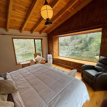 The 6-room Pucontours River Lodge is situated about 10 minutes by car from Bosque Aventura Pucon and provides a Jacuzzi and a sauna, ensuring a relaxing stay. Featuring access to a patio, this Pucon lodge is located approximately 10 minutes' drive from Ojos del Caburgua.